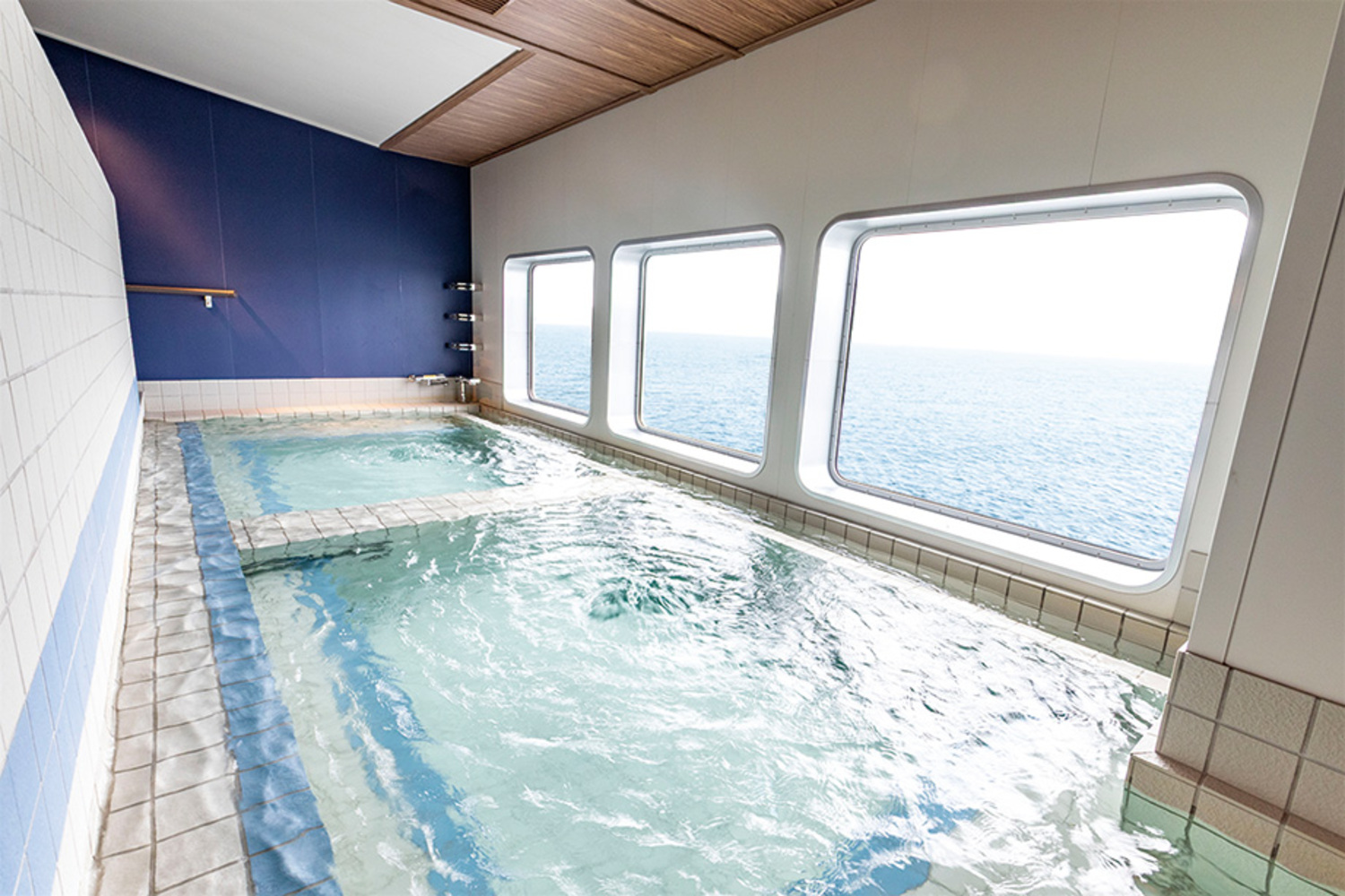 You can enjoy the buffet at the restaurant and the large bath with a view of the sea on every route.